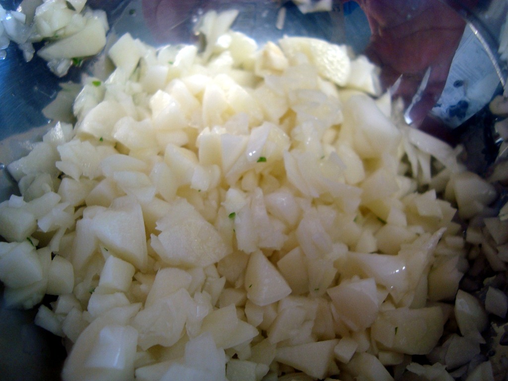 נקצוץ לנו דק עלים מכחצי חבילה של פטרוזיליה. נערבב את השום והפטרוזיליה ביחד.