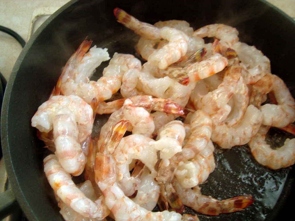 בינתיים נתוודע למולים ולשרימפסים. בהנחה שהשרימפסים כבר קלופים (ואם לא, זה הזמן לקלוף אותם) אין יותר מדי מה לעשות חוץ מלהכיר אותם, שלום שלום, ולתת להם לעמוד מעט בחוץ על מנת שיגיעו לטמפרטורת החדר או קרוב אליה לפני שנתחיל את הבישול.