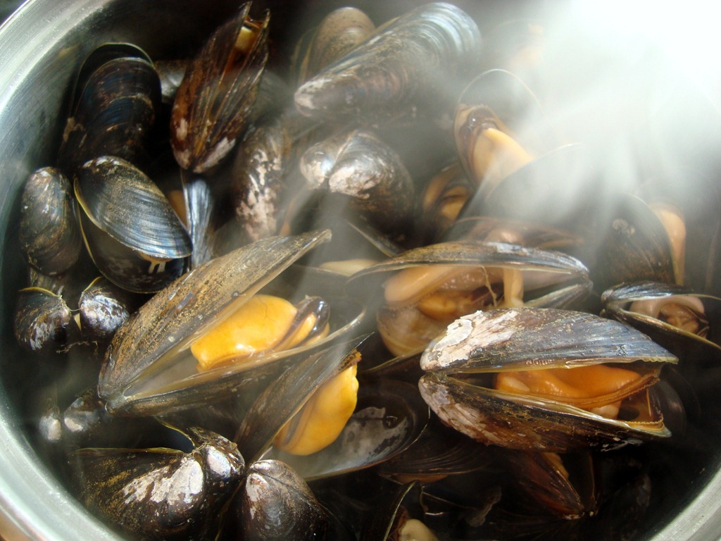 בינתיים, אני מניח, הציר של המולים כבר רותח. המולים כבר אמורים להיות פתוחים, עם בשר רך וכתום וריחני.