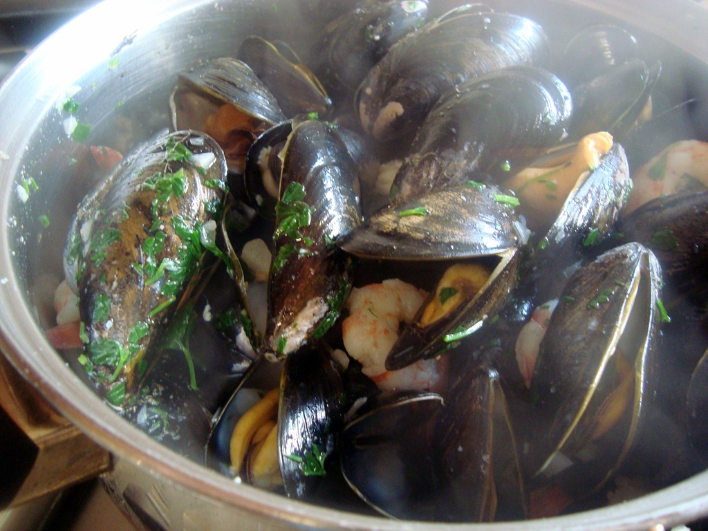 זהו. יש לשולחן. מנות פירות ים הן מנות שלא מחכות לאורחים אלא האורחים מחכים להן – וזה הזמן להרשים את האורחים שלכם עם מנה שעושה כבוד לחומרי הגלם, עם טעמים חזקים מאוד של שום, יין לבן ופטרוזיליה. זה הזמן לעדכן את האורחים שלכם שמולים שלא נפתחו – לא פותחים ולא אוכלים. כנראה שהם הגיעו במצב גריאטרי לציר.