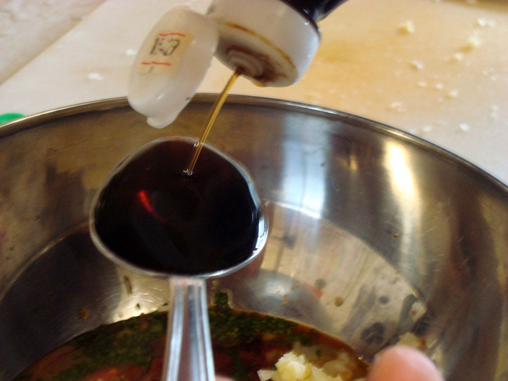 נערבב את הכל בקערה ונוסיף ארבע שיני שום כתוש ושתי כפות של רוטב דגים – נאם פלא. נאם פלא הוא רוטב שעשוי מדגים שהותססו ולאחר מכן הוסיפו לתערובת התסיסה תועפות של מלח בכדי שהחיידקים המתסיסים לא ימשיכו להתקיים. נאם פלא הוא באמת פלא – מדובר על רוטב שכשהוא לבד, הוא מסריח ומגעיל ואין סיכוי שתשתמשו בו, אבל כשהוא עם עוד טעמים, הוא פשוט מדהים ונותן מליחות וטעם מאוד מאוד עמוק. אם אתם זוכרים את הפוסט שלי על אומאמי, אז זה הטעם העמוק שמגיע מהחומצה הגלוטמית שדגים כל כך עשירים בה. אני מציע לטעום את תערובת התיבול – אם אתם לא אוהבים מה שיש שם, אם חסר קצת מלוח או קצת חריף או קצת משהו אחר, זה הזמן.