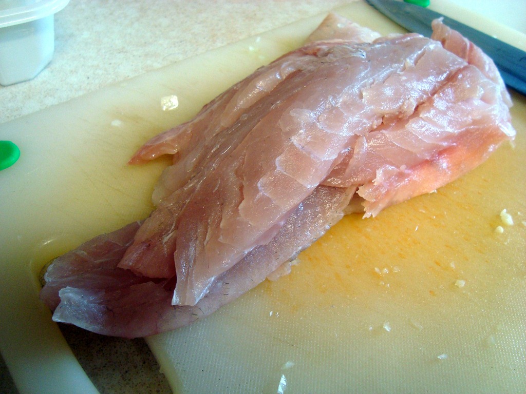 זה הזמן לקצוץ את הדג ששמרתם במקרר. אנחנו צריכים כ- 600-700 גר' דג נקי, כלומר בערך 1700-1800 ברוטו (דג שלם, עם ראש ועור ועצמות ועיניים והכל). כן, לא יאומן, אבל דג הוא אחד ממוצרי החלבון עם הפחת הגבוה ביותר, כ- 60% פחת. איזה דג? איזה שאתם אוהבים – החל ממלך הים, הלוקוס, עבור דרך פלמידה , מוסר ים, דניס, בורי. מה שבא לכם, או תערובת של מה שבא לכם ומה שמוכר הדגים ממליץ לכם, או במקרה שלי, מה שמוכר(ת) הדגים שלי אמרה לי לקחת. מוסר-ים אחד ודניס אחד.
